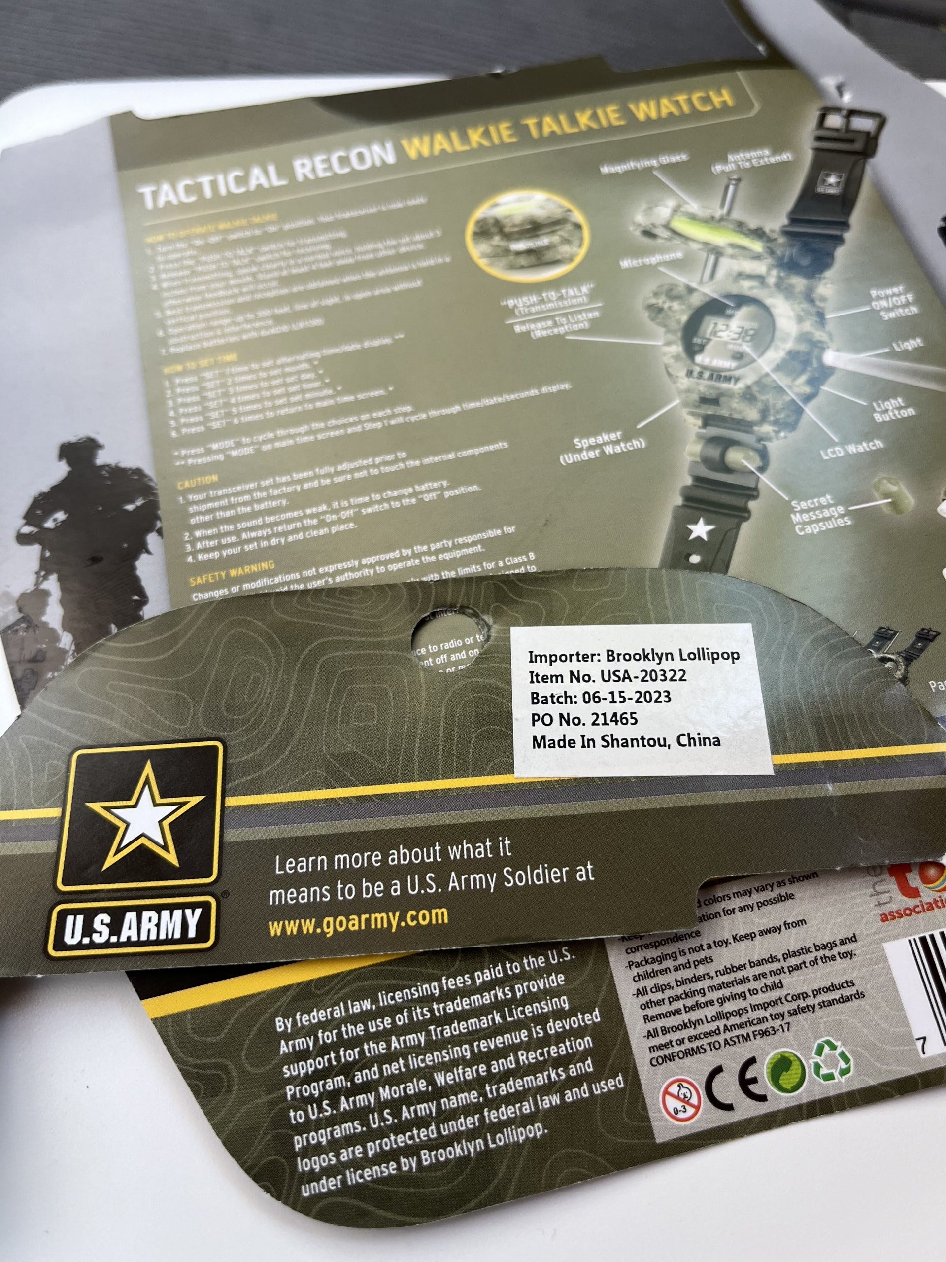 An eagle-eyed VIP reader notices an interesting IP licensing arrangement on his kids’ new US Army walkie talkies: